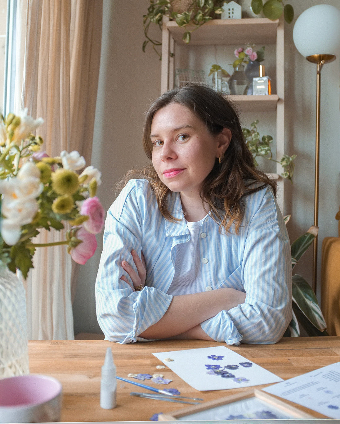 Fondatrice de Chemin des Marettes, je crée des collections d’herbiers et de papeterie sur mesure, explorant mes motifs, illustrations et savoir-faire artisanal.